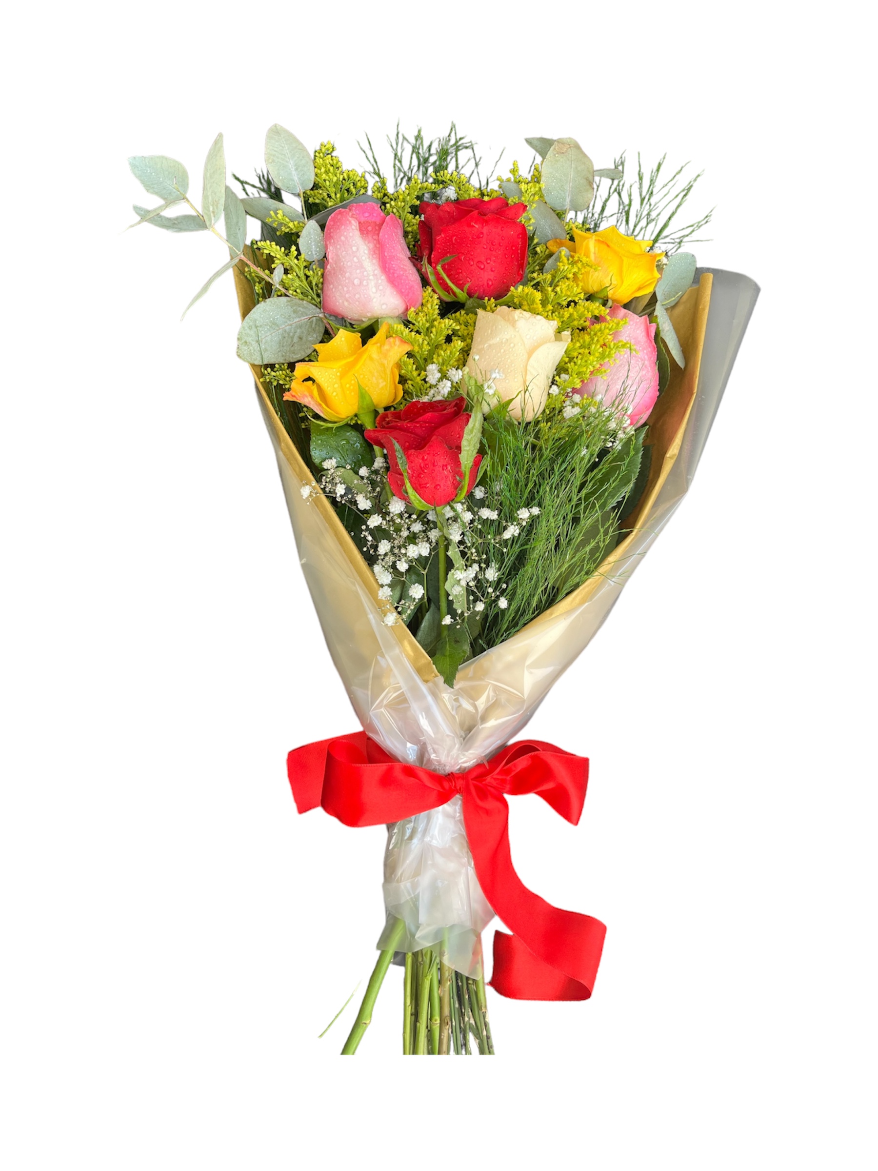 Buque Encanto Rosas Coloridas - Alegria, jovialidade e carinho simbolizam este lindo buque de rosas. Ideal para aniversários e datas comemorativas.