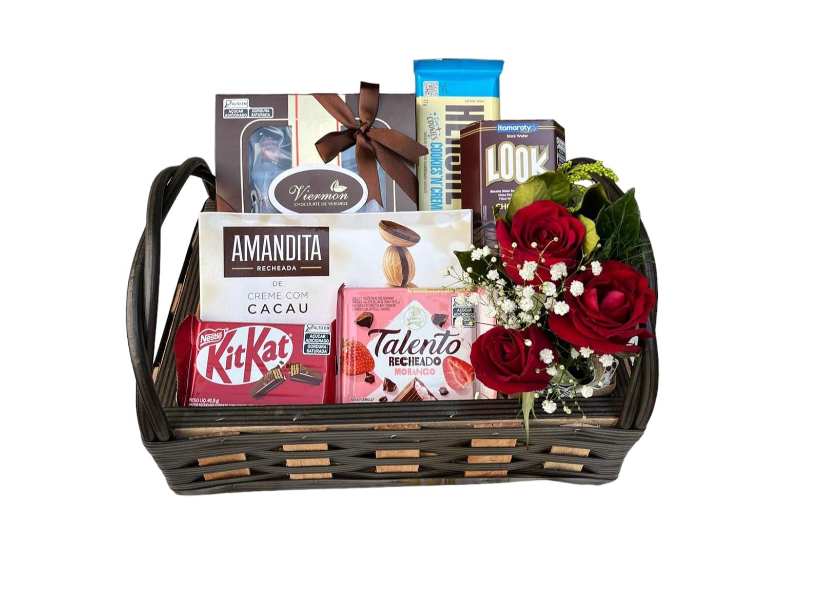 Cesta de Chocolate Cacau - Surpreenda quem você ama com nossa Cestas de Chocolate Cacau! Uma seleção irresistível com variedade de chocolates, cuidadosamente disposto em uma linda cesta de Vime. Perfeita para aniversários, datas comemorativas ou simplesmente adoçar o dia de alguém muito especial.