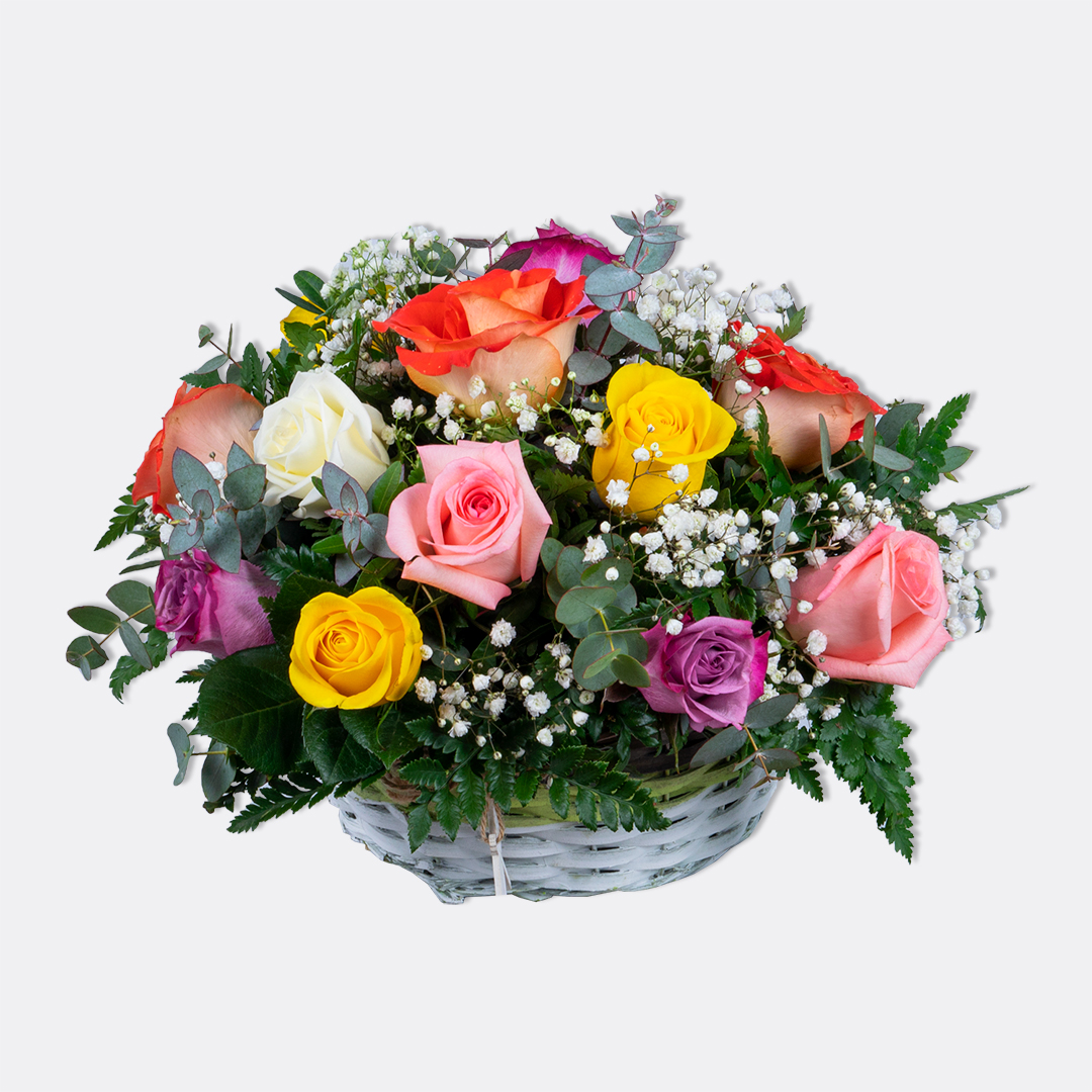 Uma cesta de Rosas Coloridas é uma composição encantadora e vibrante que evoca beleza e romantismo. Dentro dela, destacam-se uma variedade de tonalidades, que juntas simbolizam: Paixão, amor, gratidão, alegria, amizade e carinho. Perfeita para todas as ocasiões.