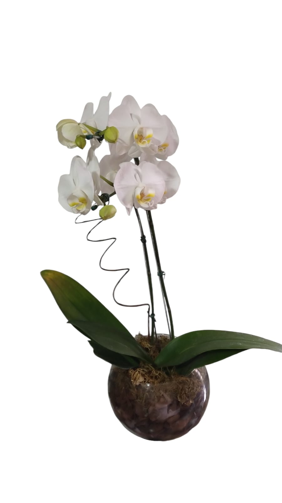 Orquídea Carinhosa - Orquídea Branca em um vaso de vidro toda charmosa